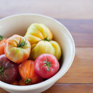 Look at these tomatoes; they are pretty different from your grocery store ones, right? These are heirloom tomatoes.